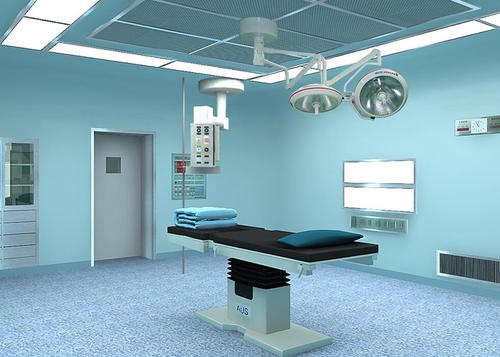 1.照明设计因手术室中的照明问题对手术影响极大,因此手术室中选用混合照明的办法,有一般照明、重点照明、信号灯和观片灯照明等等。其中一般照明规定显色指数必须在90以上,要尽量靠近自然光线,所以常使用色温在4000~5000K中间并且与无影灯光源色温相适应的洁净荧光灯。手术室中的照明灯具最好是放置在手术台附近,需注意的是一定要装设在送风口外侧。另外,需要保证手术室中没有刺眼反光,高级手术室的照度均匀(jūn yún)度,即最低照度值与平均照度值的比值(两数相比所得的值)应当大于0.7。单管灯带若在过滤器边框之下,则需有流线型的灯罩,且手术室必须是全室单流向型。最后,应选用三相均匀配电,防止荧光灯发生频闪。手术室中的无影灯,可按不同手术室的不同需求给予相应配置,一般选取多头型无影灯。在送风面上方安置调平板,两者相距应大于5厘米。因为无影灯与照明光学和医学等学科息息相关,故而因由相关专业人员进行专门的研究设计。手术室中的观片灯,应依据手术室需求进行不同大小的配置。观片灯可放置在墙体内,为了方便医生观片,观片灯需在医生所面对的墙体上,且高度控制(control)在一米左右。另外,对于多联观片灯可以在其控制面板上设置不同控制开关。考虑到病人家属需求以及保证手术安全顺利进行,需在手术室外门上方装设指示灯。指示灯的开关设计有两种方案:其一,在手术室内单独设置,由护士在手术开始前或结束后切换指示灯状态;其二,指示灯开关与无影灯相关联,进行联锁控制。